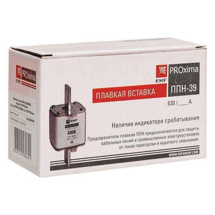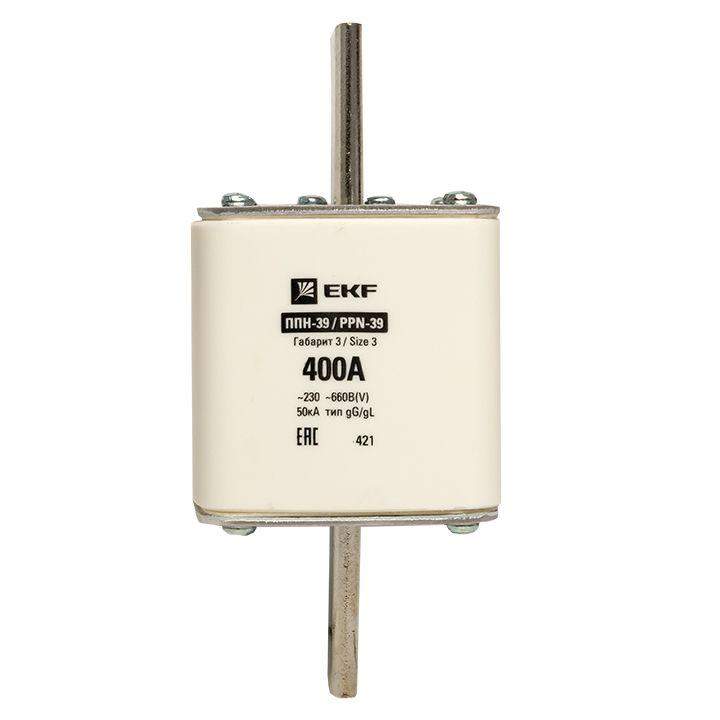 Плавкая вставка ППН-39 630/400А габарит 3 EKF. Предохранители плавкие ППН EKF, укомплектованные плавкими вставками типа gG/gL, предназначаются для защиты кабельных линий и промышленных электроустановок от токов перегрузки и короткого замыкания. Предохранители применяются в электрических сетях переменного тока частотой 50 Гц с напряжением до 660В. Применяются для крепления в распределительных и вводно-распределительных устройствах. Предохранители плавкие ППН могут устанавливаться в основание с держателем, а также в специально предназначенные рубильники. В комплект поставки предохранителей плавких ППН основание с держателем не входит и приобретается отдельно.