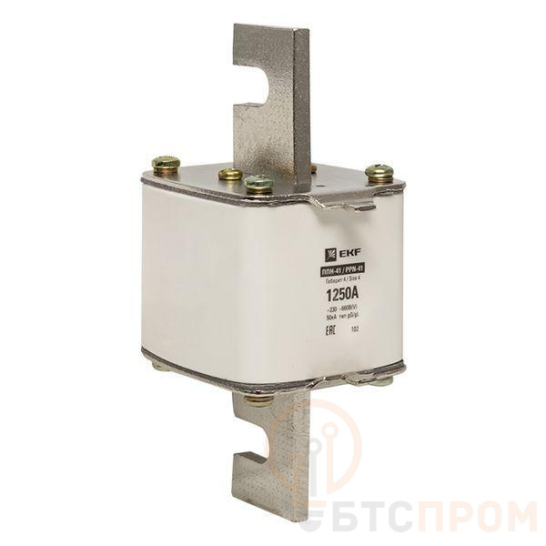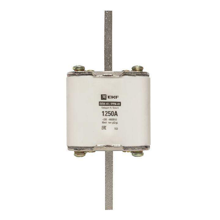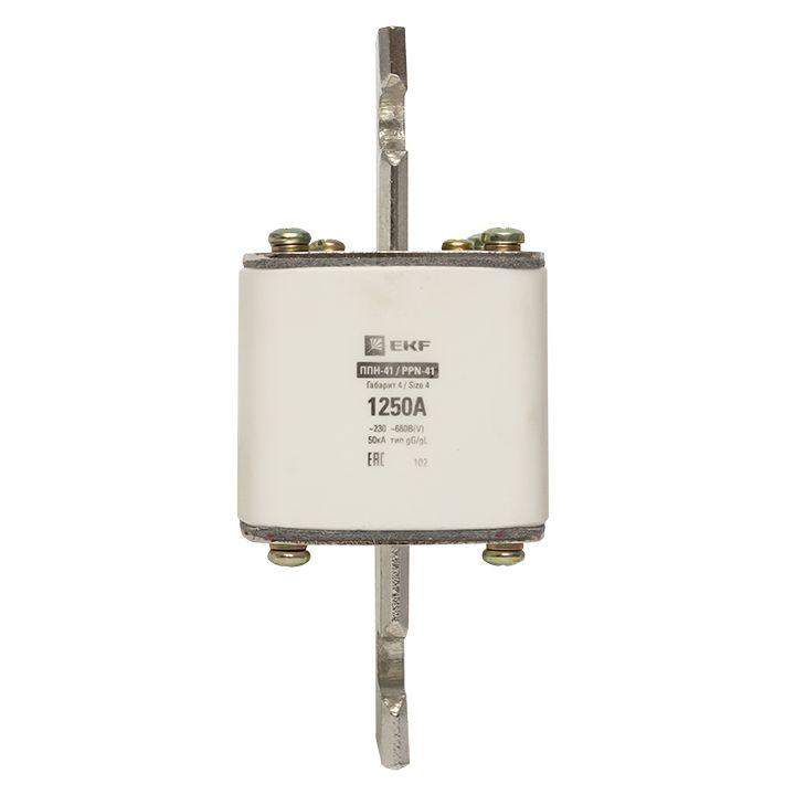 Плавкая вставка ППН-41 1250/1250А габарит 4 EKF. Предохранители плавкие ППН EKF, укомплектованные плавкими вставками типа gG/gL, предназначаются для защиты кабельных линий и промышленных электроустановок от токов перегрузки и короткого замыкания. Предохранители применяются в электрических сетях переменного тока частотой 50 Гц с напряжением до 660В. Применяются для крепления в распределительных и вводно-распределительных устройствах. Предохранители плавкие ППН могут устанавливаться в основание с держателем, а также в специально предназначенные рубильники. В комплект поставки предохранителей плавких ППН основание с держателем не входит и приобретается отдельно.