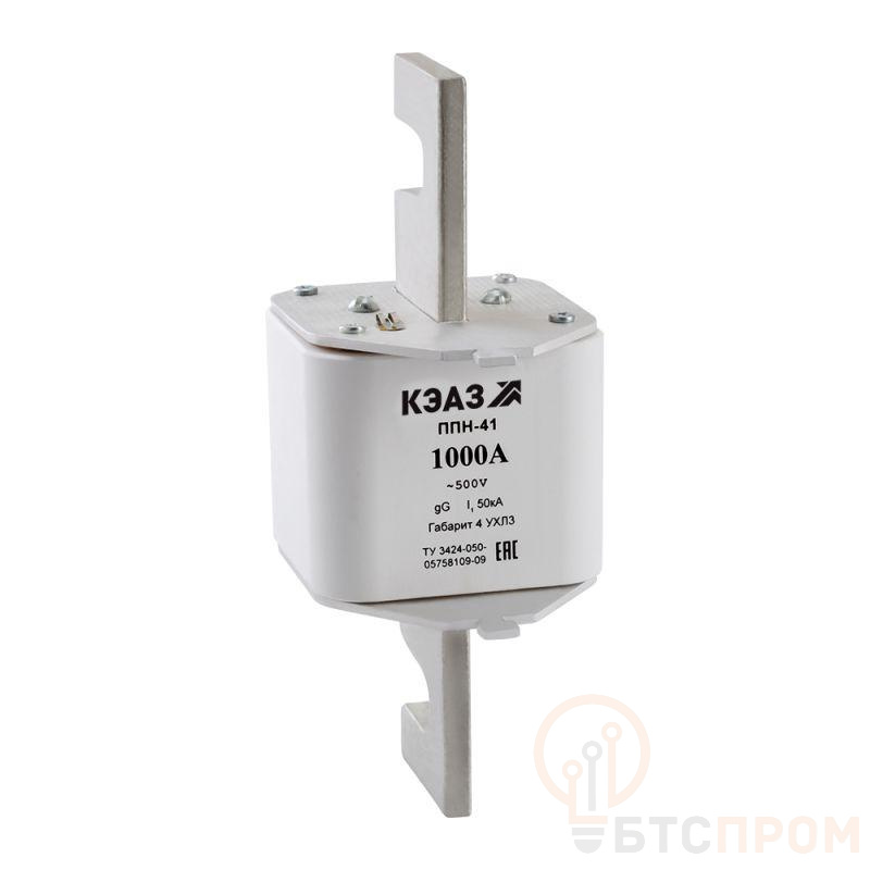 Предохранитель ножевого типа на номинальный ток 1250 А, габаритом 4 и потерями мощности 110 Вт.