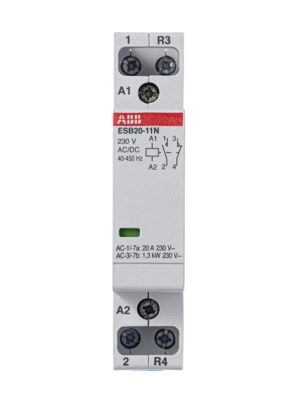 Контактор ESB20-11N-06 модульный (20А АС-1 1НО+1НЗ) катушка 230В AC/DC ABB 1SBE121111R0611