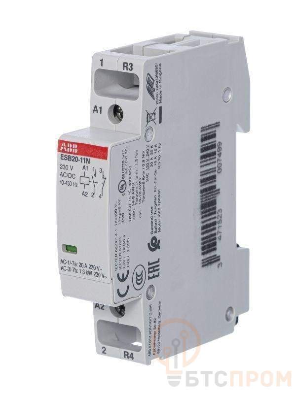 –Контактор ESB20-11N-06 модульный (20А АС-1 1НО+1НЗ) катушка 230В AC/DC ABB 1SBE121111R0611