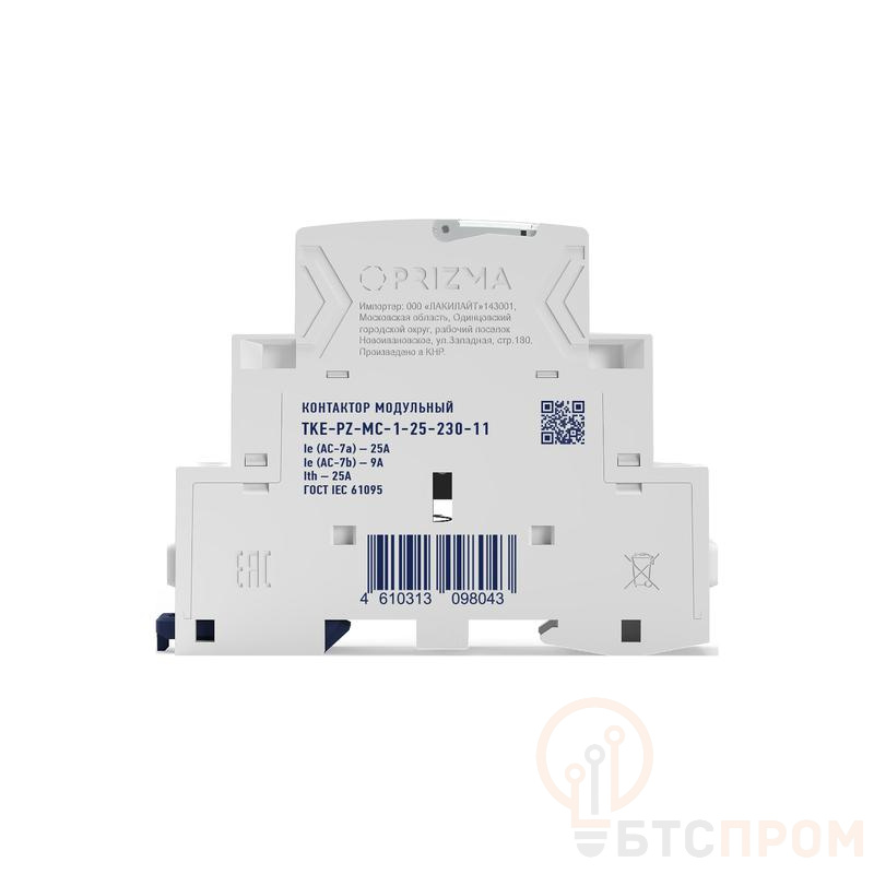 Контактор модульный TKE-PZ-MC-1-25-230-11 от бренда PRIZMA TOKOV ELECTRIC — это компактное и надежное устройство, предназначенное для коммутации электрических цепей. Установка осуществляется на DIN-рейку 35 мм в стандартный модуль шириной 18 мм.