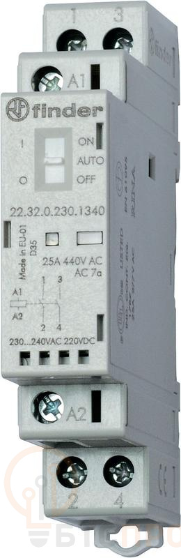 Контактор модульный 2NC 25А AgNi 48В AC/DC 17.5мм IP20 опции: мех.индикатор + LED FINDER 223200481420