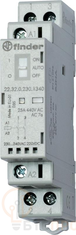 Сферы применения: системы автоматизации зданий, управление освещением, вентиляционным оборудованием, насосами, тепловыми завесами и другими силовыми нагрузками. Контактор совместим с системами Умный дом и промышленной автоматикой. Артикул производителя: FINDER 223200484340.