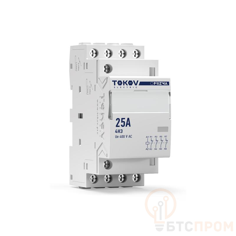 Контактор модульный TKE-PZ-MC-2-25-230-04 от бренда PRIZMA TOKOV ELECTRIC — это компактное и надежное устройство для коммутации силовых цепей, устанавливаемое на DIN-рейку. Номинальный ток контактора составляет 25 А, что делает его идеальным для управления мощной нагрузкой в однофазных и трехфазных сетях с напряжением до 230 В переменного тока.