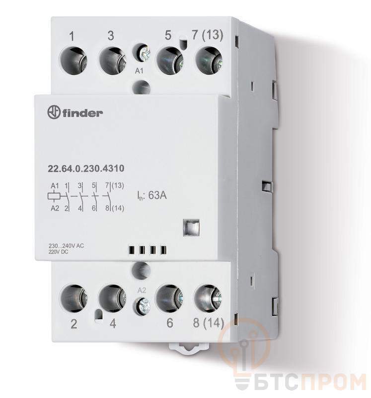 Контактор модульный 4NO 63А AgSnO2 230В AC/DC 53.5мм IP20 опции: мех. индикатор FINDER 226402304310 фото в каталоге от BTSprom.by