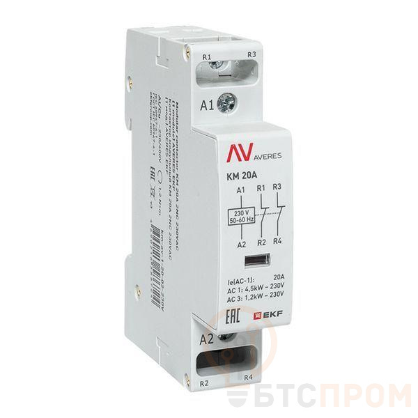 –Контактор модульный КМ 20А 2NC 230В AC (1 мод.) AVERES EKF km-av-1-20-02-230V