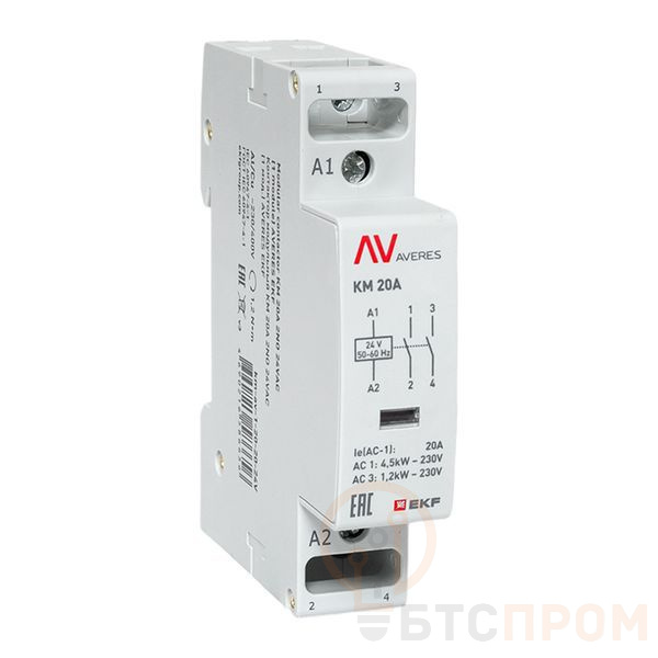 Контактор модульный КМ 20А 2NО 24В AC (1 мод.) AVERES EKF km-av-1-20-20-24V фото в каталоге от BTSprom.by