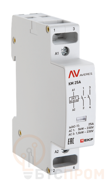 Контактор модульный КМ 25А 1NC+1NO 24В AC (1 мод.) AVERES EKF km-av-1-25-11-24V фото в каталоге от BTSprom.by