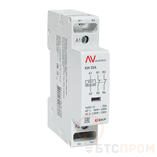 Контактор модульный КМ 25А 2NC 230В AC (1 мод.) AVERES EKF km-av-1-25-02-230V фото в каталоге от BTSprom.by
