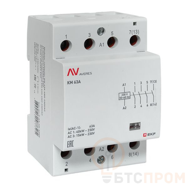Контактор модульный КМ 63А 4NO 230В AC (3 мод.) AVERES EKF km-av-3-63-40-230V фото в каталоге от BTSprom.by