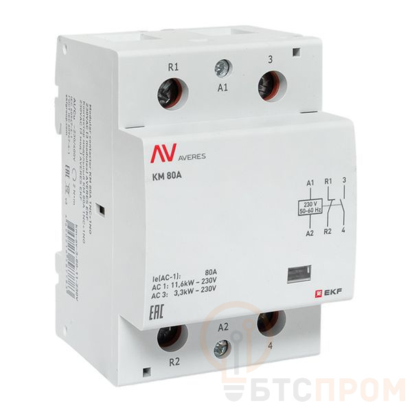Контактор модульный КМ 80А 1NC+1NO 230В AC (3 мод.) AVERES EKF km-av-3-80-11-230V фото в каталоге от BTSprom.by