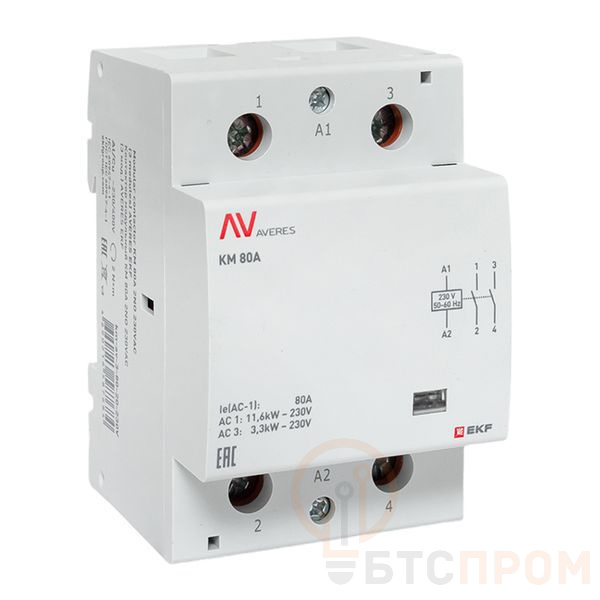 Контактор модульный КМ 80А 2NО 230В AC (3 мод.) AVERES EKF km-av-3-80-20-230V фото в каталоге от BTSprom.by