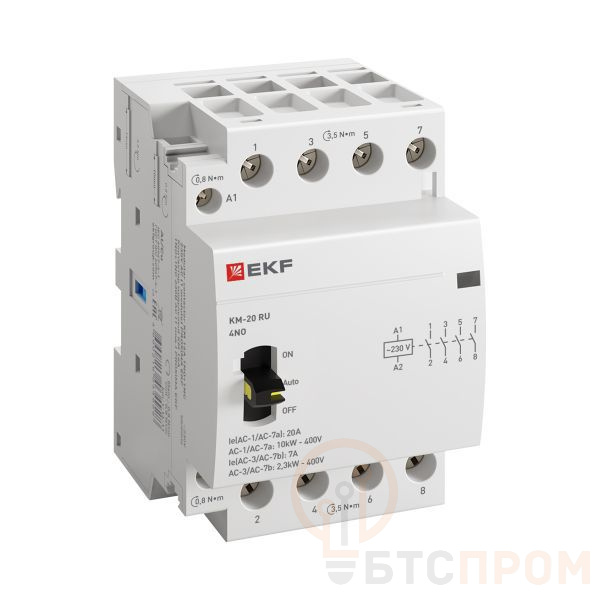 Контактор модульный КМ РУ 20А 4NO (3 мод.) PROxima EKF km-3m-20-40 фото в каталоге от BTSprom.by