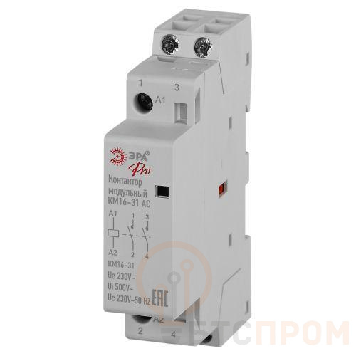 <p>Контактор модульный КМ16-31 АС PRO от бренда Эра — это современный коммутационный аппарат, предназначенный для дистанционного управления различными нагрузками в цепях переменного тока. Устройство рассчитано на номинальный ток 16 А и рабочее напряжение до 400 В, что делает его надежным решением для коммутации мощного освещения, систем вентиляции, отопления и других силовых цепей.</p>