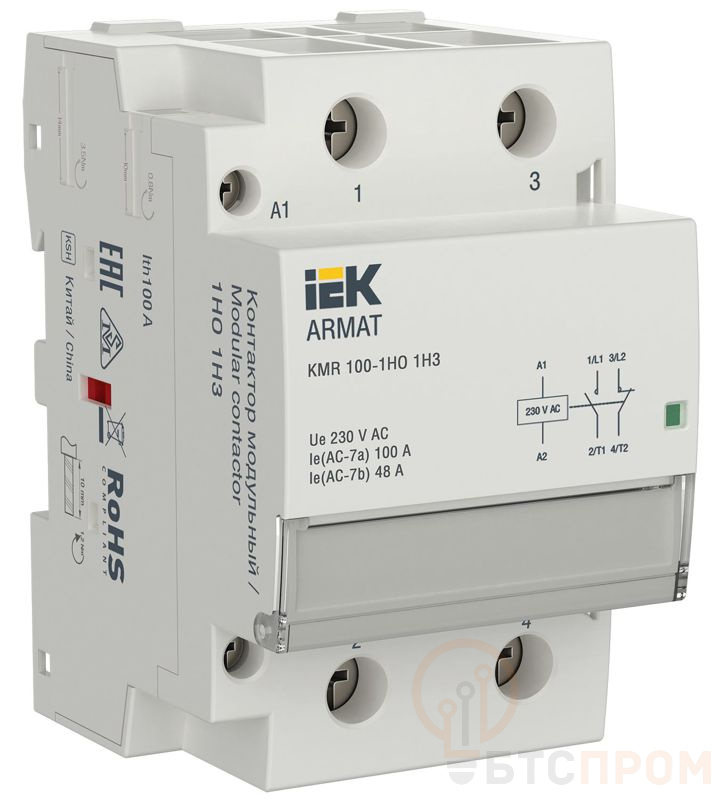 Контактор модульный KMR 100А 230В AC 1НО 1НЗ ARMAT IEK AR-KMR10-100-11-230 фото в каталоге от BTSprom.by