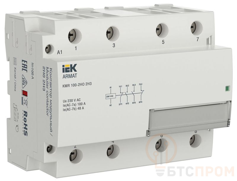 Контактор модульный KMR 100А 230В AC 2НО 2НЗ ARMAT IEK AR-KMR10-100-22-230 фото в каталоге от BTSprom.by