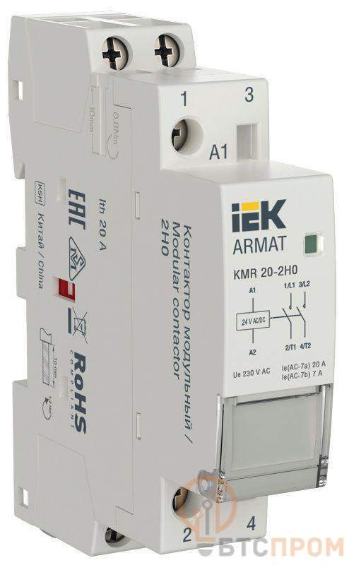 Контактор модульный KMR 20А 24В AC/DC 2НО ARMAT IEK AR-KMR20-020-20-024 фото в каталоге от BTSprom.by