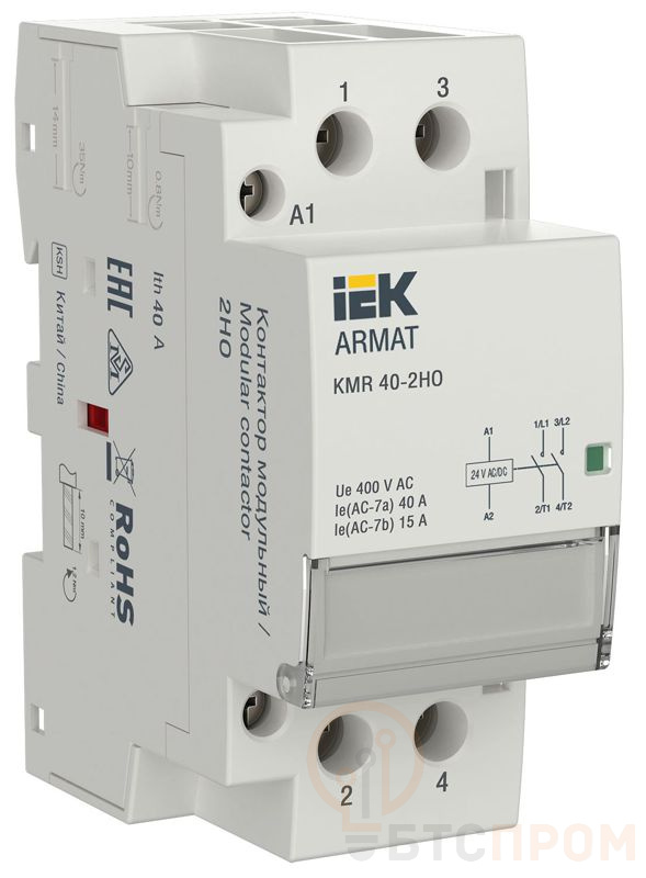 Контактор модульный KMR 40А 24В AC/DC 2НО ARMAT IEK AR-KMR20-040-20-024 фото в каталоге от BTSprom.by
