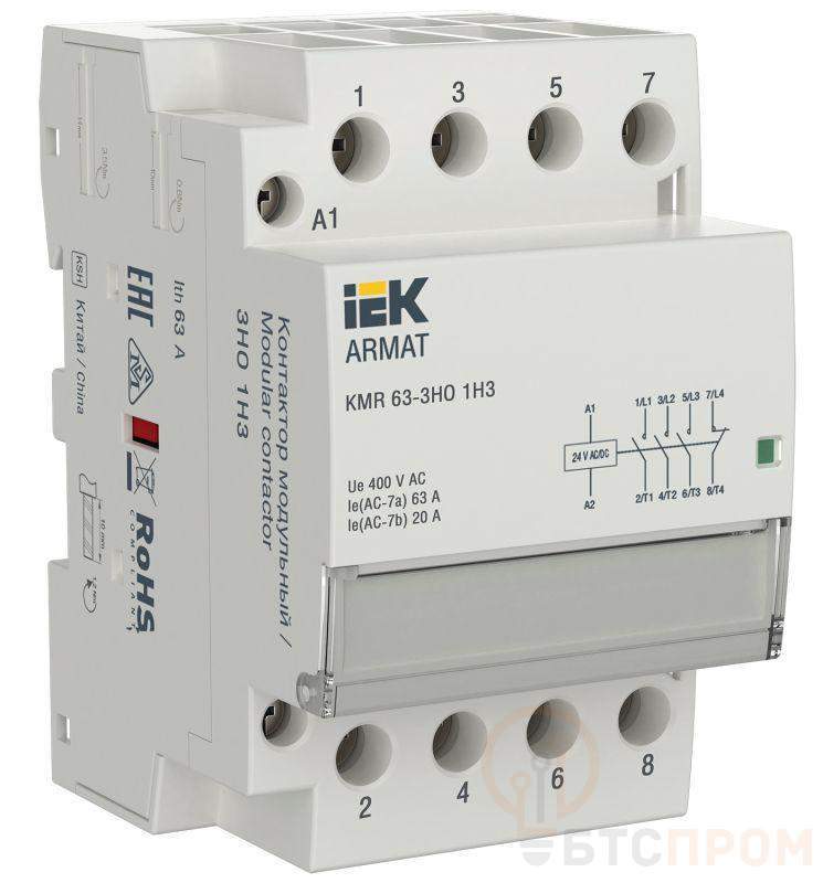 Контактор модульный KMR 63А 24В AC/DC 3НО 1НЗ ARMAT IEK AR-KMR20-063-31-024 фото в каталоге от BTSprom.by
