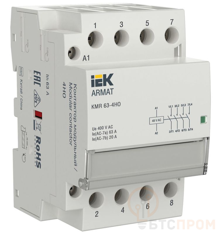 Контактор модульный KMR 63А 48В AC 4НО ARMAT IEK AR-KMR10-063-40-048 фото в каталоге от BTSprom.by