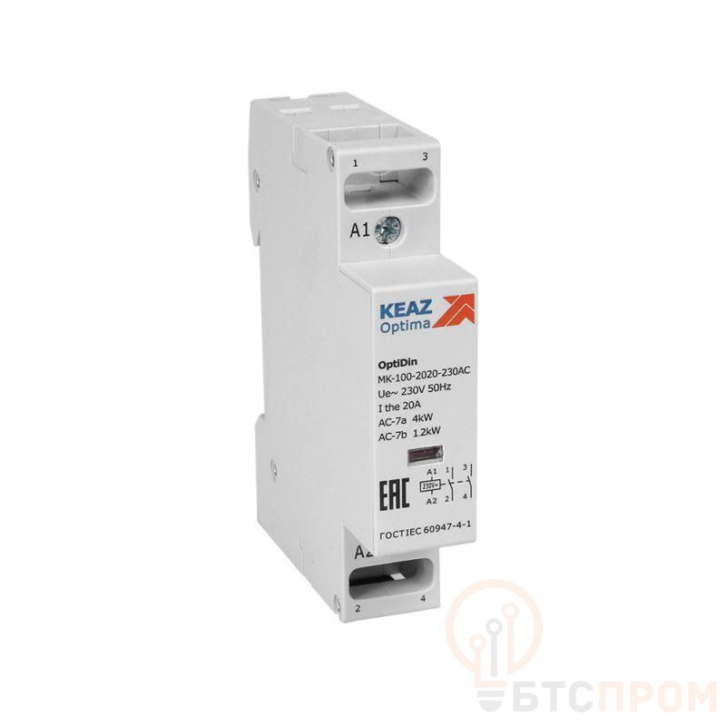 Модульный контактор на номинальный ток 20 А габаритом 1 модуль с контактной группой 1 НО, 1 НЗ .