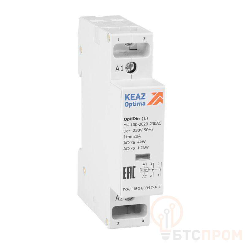 Модульный контактор OptiDin MK-100 (L) на номинальный ток 20 А габаритом 1 модуль с контактной группой 2 НО, 0 НЗ .