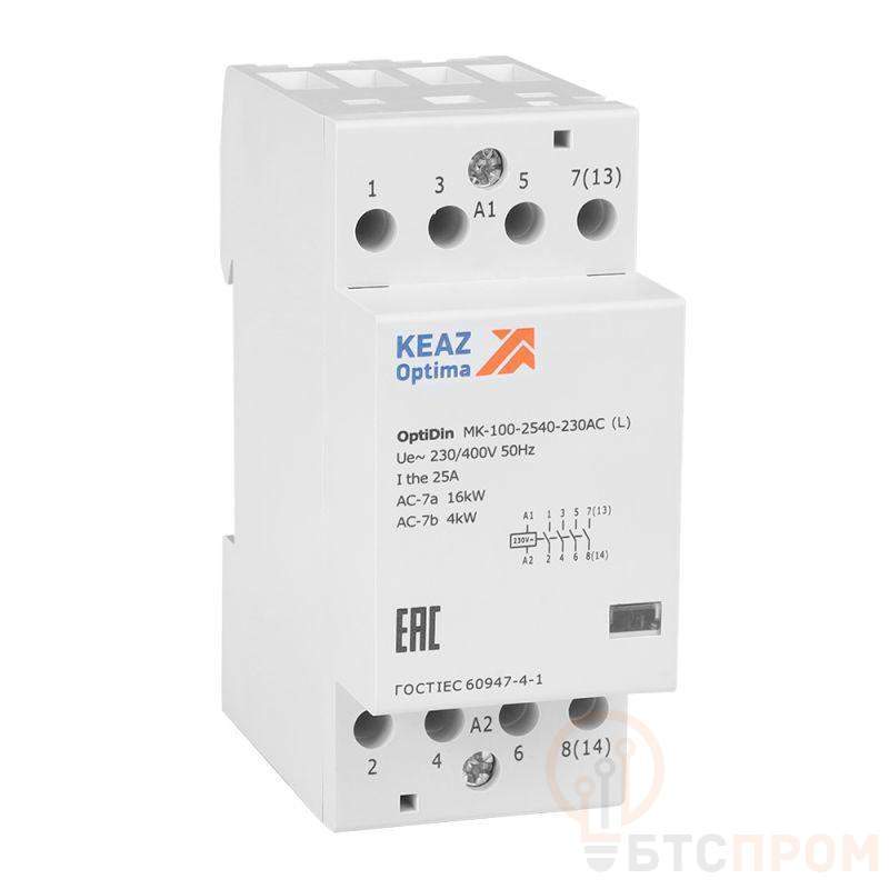 Модульный контактор OptiDin MK-100 (L) на номинальный ток 25 А габаритом 2 модуль с контактной группой 4 НО, 0 НЗ .