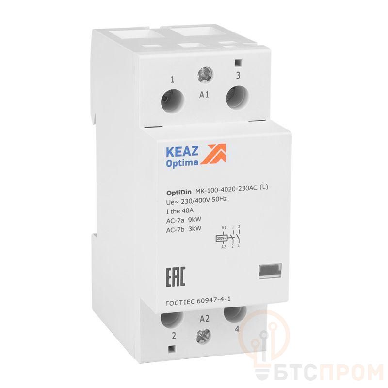Модульный контактор OptiDin MK-100 (L) на номинальный ток 40 А габаритом 2 модуль с контактной группой 2 НО, 0 НЗ .