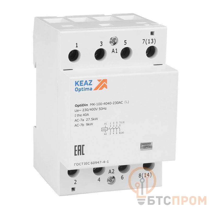 Модульный контактор OptiDin MK-100 (L) на номинальный ток 40 А габаритом 3 модуля с контактной группой 4 НО, 0 НЗ .