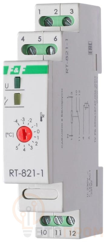 Регулятор температуры RT-821.1 (от -4 до +5 град.C; выносной датчик; гистерезис 30 град.C; монтаж на DIN-рейке 35мм 230В 16А 1P IP20) F&F EA07.001.004