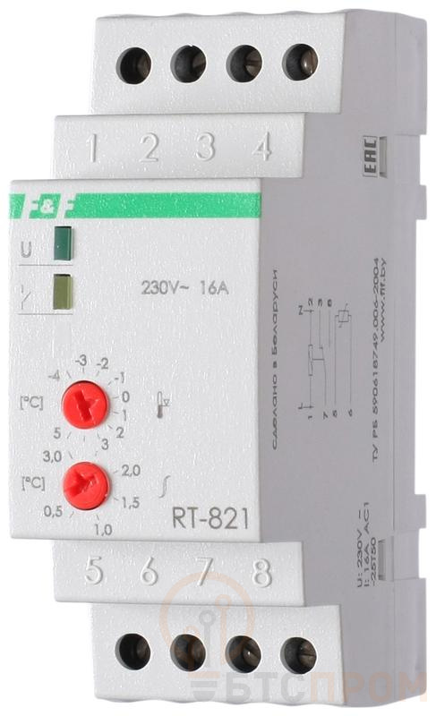 Регулятор температуры RT-821 (от -4 до +5 град.C; с выносным датчиком в комплекте; 2 модуля; монтаж на DIN-рейке; 50-264В AC 16А 1NO/NC IP20) F&F EA07.001.003