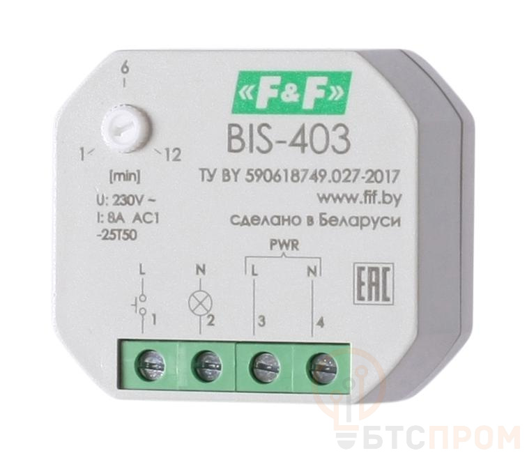 Реле импульсное BIS-403 (230В 8А 1Z с лестничным автоматом в монтаж. коробку d60мм) F&F EA01.005.004
