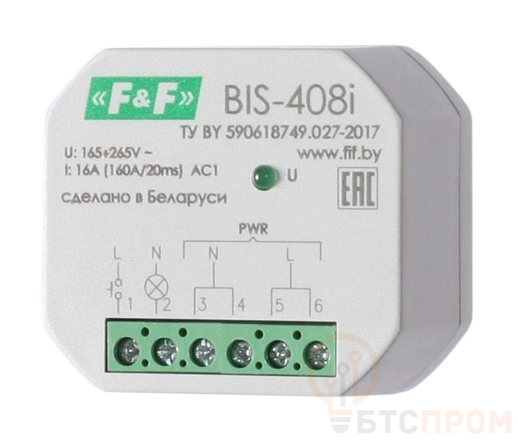 Реле импульсное BIS-408i (установка в монтажную коробку d60мм; для нагрузки с больш. пусков. током (160А/20мс)) F&F EA01.005.015