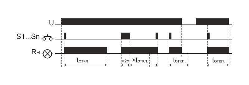 Реле импульсное бистабильное серии "BIS" В монтажную коробку. Предназначено для управления одной нагрузкой, включение/выключение освещения, электроустановки и т.п. из нескольких мест выключателями кнопочного типа, параллельно соединенными между собой. Таймер времени реле обеспечивает выключение нагрузки через настраиваемый интервал времени в диапазоне от 1 до 15 минут. Принцип работы Включение нагрузки осуществляется подачей электрического импульса на вход управления реле замыканием любого из выключателей кнопочного типа, параллельно соединенных между собой. Выключение нагрузки произойдёт после очередного замыкания одного из выключателей, либо по окончании времени выключения, установленного переключателем на корпусе реле в интервале от 1 до 15 минут. Особенности: таймер времени с настраиваемой задержкой выключения в интервале от 1 до 15 минут; нет памяти контактов; возможно подключение выключателей кнопочного типа с подсветкой; максимальный ток нагрузки 16 А.