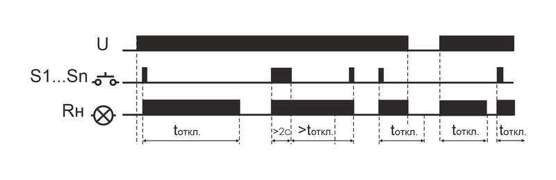 Реле импульсное бистабильное серии "BIS" Монтаж на DIN-рейку. Предназначено для управления одной нагрузкой, включение/выключение освещения, электроустановки и т.п. из нескольких мест выключателями кнопочного типа, параллельно соединенными между собой. Таймер времени реле обеспечивает выключение нагрузки через настраиваемый интервал времени в диапазоне от 1 до 12 минут. Принцип работы Включение нагрузки осуществляется подачей электрического импульса на вход управления реле замыканием любого из выключателей кнопочного типа, параллельно соединенных между собой. Выключение нагрузки произойдёт после очередного замыкания одного из выключателей, либо по окончании времени выключения, установленного переключателем на корпусе реле в интервале от 1 до 12 минут. Особенности: таймер времени с настраиваемой задержкой выключения в интервале от 1 до 12 минут; гальваническая развязка между исполнительными реле (сухой контакт) и цепью питания; память контактов; возможно подключение выключателей кнопочного типа с подсветкой; максимальный ток нагрузки 16 А.