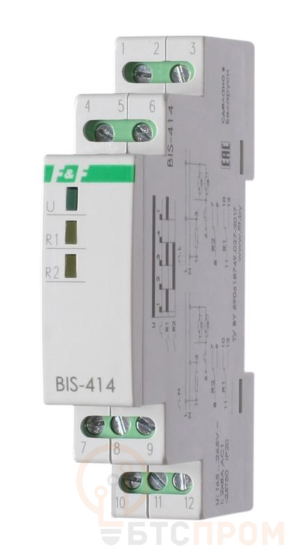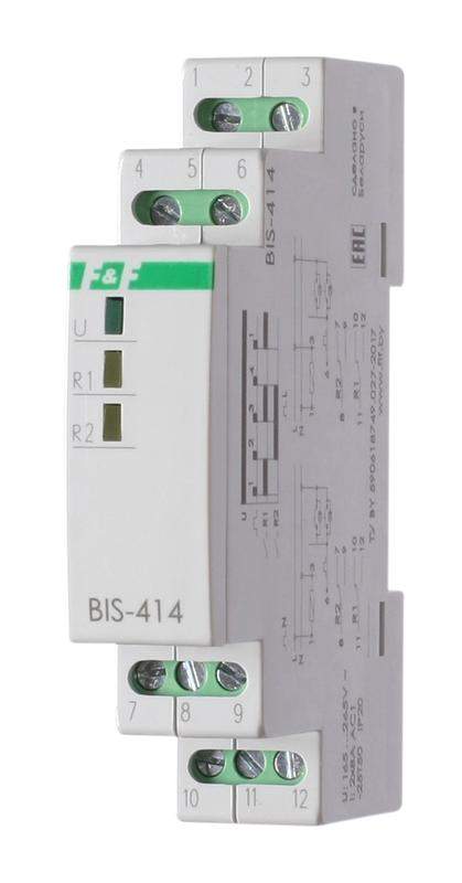 Реле импульсное бистабильное серии "BIS" Монтаж на DIN-рейку. Предназначено для управления двумя нагрузками по одному управляющему входу, включение/выключение освещения, электроустановок и т.п. из нескольких мест выключателями кнопочного типа, параллельно соединенными между собой. Принцип работы Включение, либо выключение нагрузки осуществляется подачей электрического импульса на вход управления реле замыканием любого из выключателей кнопочного типа, параллельно соединенных между собой. Особенности: два исполнительных реле; гальваническая развязка между исполнительными реле (сухой контакт) и цепью питания; последовательное управление нагрузкой; нет памяти контактов; возможно подключение выключателей кнопочного типа с подсветкой; максимальный ток нагрузки 2х16 А.