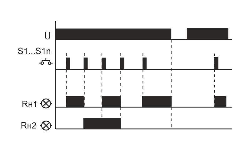 Реле импульсное бистабильное серии "BIS" Монтаж на DIN-рейку. Предназначено для управления двумя нагрузками по одному управляющему входу, включение/выключение освещения, электроустановок и т.п. из нескольких мест выключателями кнопочного типа, параллельно соединенными между собой. Принцип работы Включение, либо выключение нагрузки осуществляется подачей электрического импульса на вход управления реле замыканием любого из выключателей кнопочного типа, параллельно соединенных между собой. Особенности: два исполнительных реле; гальваническая развязка между исполнительными реле (сухой контакт) и цепью питания; последовательное управление нагрузкой; нет памяти контактов; для LED освещения, кратковременная коммутация нагрузки с большим пусковым током (120А/20мс); возможно подключение выключателей кнопочного типа с подсветкой; максимальный ток нагрузки 2х16 А.