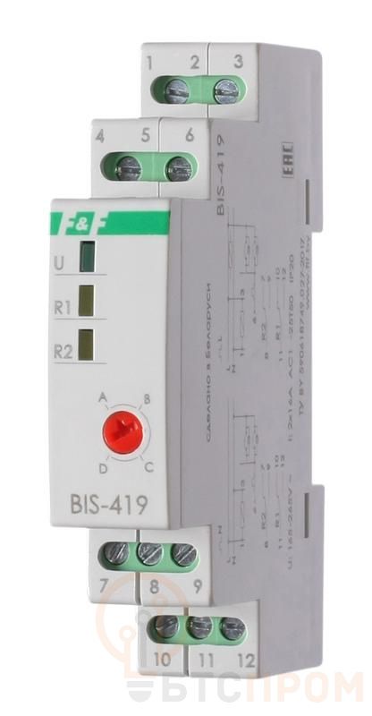 Реле импульсное BIS-419 (4 функции управление двумя нагрузками монтаж на DIN-рейке 230В 16А 2NO/NC IP20) F&F EA01.005.012
