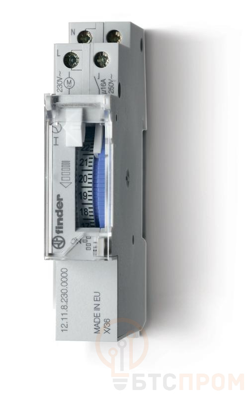 Реле времени механическое суточное 16А 230В AC 1NO 17.6мм монтаж на рейку 35мм резервн. источник питания IP20 FINDER 121182300000