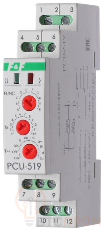 Реле времени PCS-519 2х8А 230В AC-24В AC/DC 2п IP20 многофункц. с вход. START/RESET монтаж на DIN-рейке F&F EA02.001.023