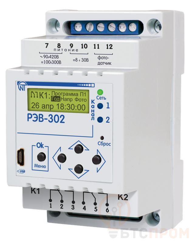 Таймер годовой двухканальный РЭВ-302 с функцией реле напряжения и выносным фотореле НовАтек-Электро 3425604302