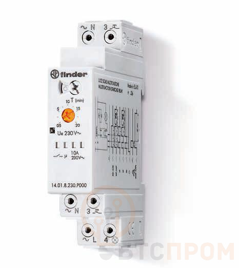 Таймер модульный мультифункциональный электронный лестничный 1NO 16А 3- или 4-проводная схема 230В AC 17.5мм IP20 безвинт. клеммы Push-in FINDER 14618230P000