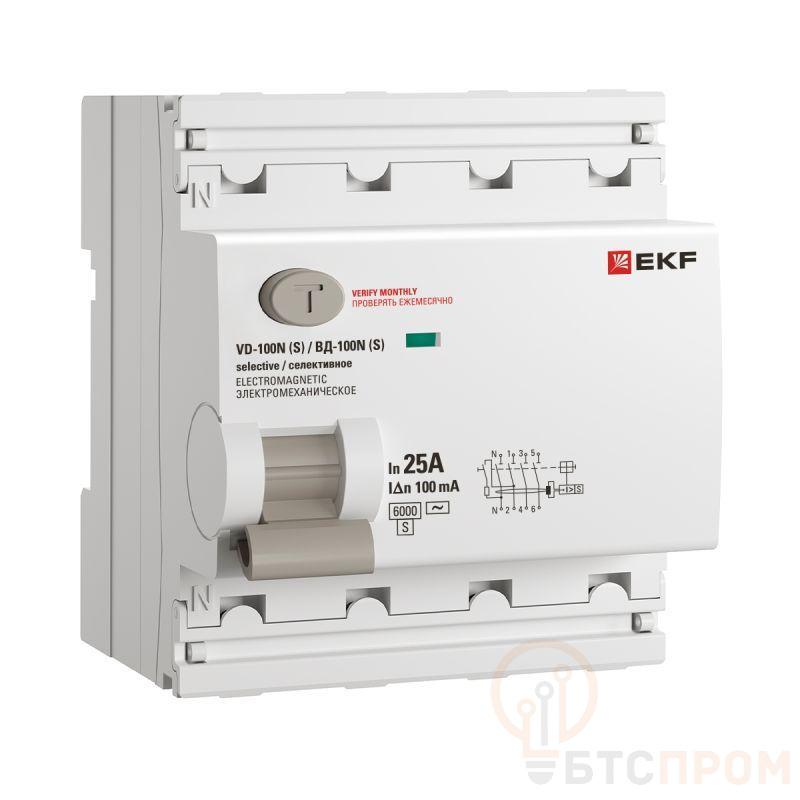 Выключатель дифференциального тока 4п 25А 100мА тип AC 6кА ВД-100N (S) электромех. PROxima EKF E1046MS25100