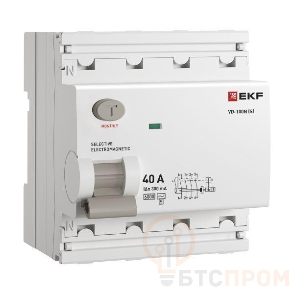 Выключатель дифференциального тока 4п 40А 300мА тип AC 6кА ВД-100N (S) электромех. PROxima EKF E1046MS40300