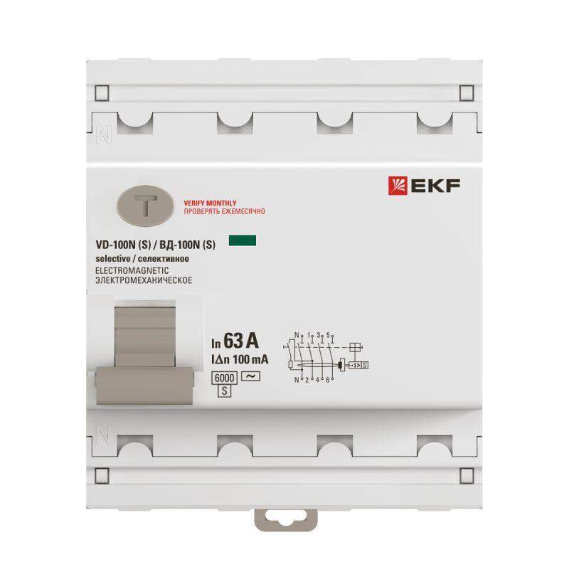 Выключатель дифференциального тока 4п 63А 100мА тип AC 6кА ВД-100N (S) электромех. PROxima EKF E1046MS63100
