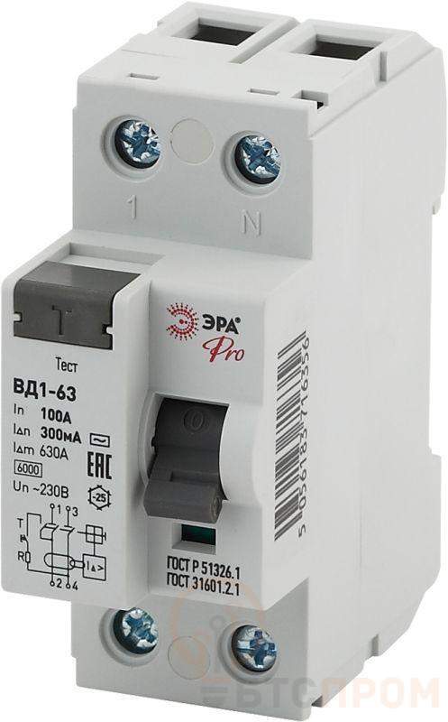 –Выключатель дифференциального тока (УЗО) 1P+N 100А 300мА ВД1-63 Pro NO-902-60 ЭРА Б0031899