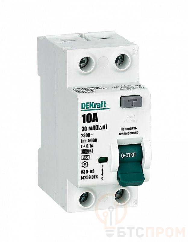 Выключатель дифференциального тока серии УЗО-03 Dekraft; 2P; номинальный ток 10 А; ном.дифф. ток 30 мА; электромеханический; тип дифференциального расцепителя - A; ВДТ применяются для защиты человека от поражения электрическим током и электроустановок от риска возникновения пожаров вследствие утечек тока. Конструкция устройств позволяет эксплуатировать их даже при низкой температуре.