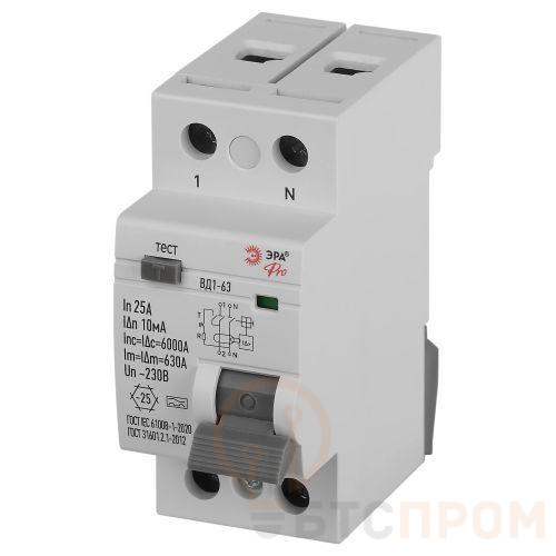 Выключатель дифференциального тока (УЗО) 2п 25А 10мА тип А ВД1-63 PRO электромех. VD2EM25A10 ЭРА Б0061640