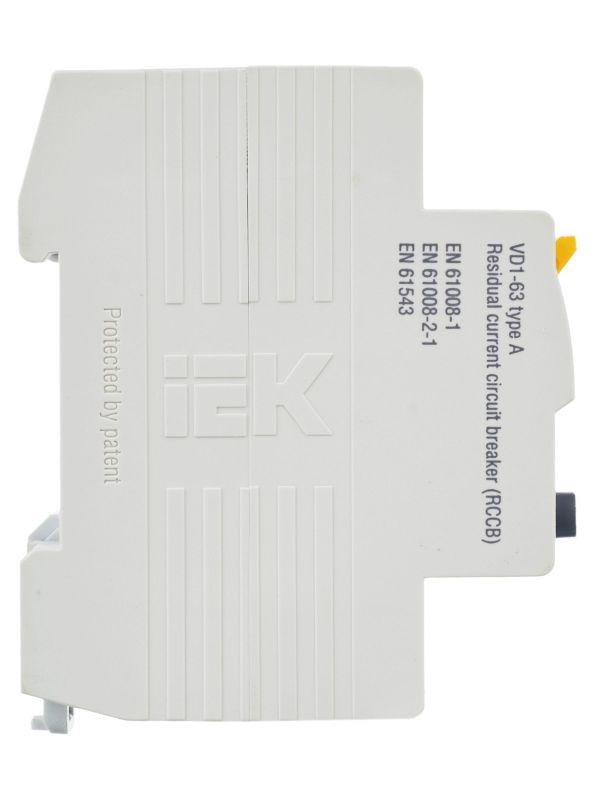 Дифференциальный выключатель ВД 1-63 тип А без встроенной защиты от сверхтоков реагирует не только на синусоидальные переменные дифференциальные токи, но и на пульсирующие постоянные дифференциальные токи. Источником пульсирующего тока являются, например, стиральные машины с регуляторами скорости, регулируемые источники света, телевизоры, видеомагнитофоны, персональные компьютеры и др. Дифференциальный выключатель ВД 1-63 тип А соответствует требованиям ГОСТ 50326 и ГОСТ 50807 как дифференциальный выключатель, "функционально не зависящий от источника питания". Дифференциальный выключатель ВД 1-63 тип А предназначен для защиты человека от поражения электрическим током при случайном непреднамеренном прикосновении к токоведущим частям электроустановок в сетях переменного тока напряжением 230/400 В и частотой 50 Гц. Дифференциальный выключатель ВД 1-63 тип А выпускается в 2-х и 4-х полюсном исполнении на номинальные токи 16А, 25А, 32А, 40А, 50А, 63А и номинальные отключающие дифференциальные токи 10мА, 30мА, 100мА.